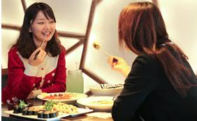 也许您在韩剧中,看到过许多女士双腿斜侧坐着用餐的场面。有说这是由以前穿韩服时的坐法沿袭下来的。这样坐当然也可以,但和男士一样盘腿而坐用餐也是没有问题的。